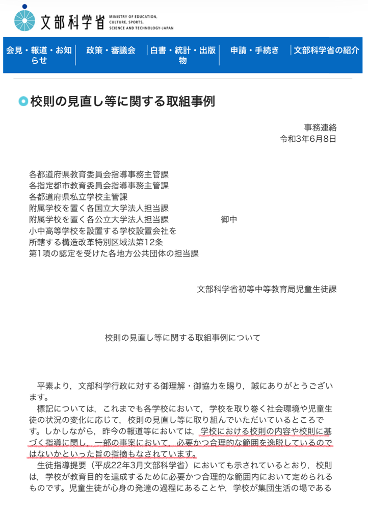文科省の校則見直し通知への対応と取り組み