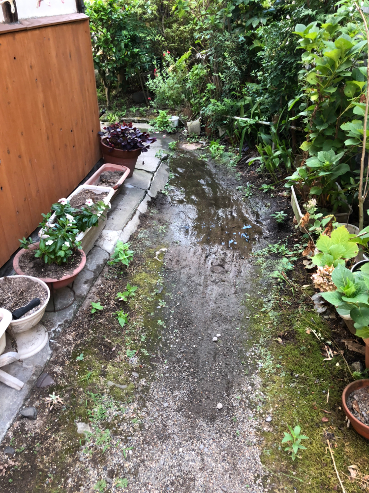 配布された議会報告「こんにちは」の記事を見て市民から相談がありました。訪問すると住宅の裏の通路の漏水でした。通路は個人の所有地で日田市では共同管の関係者で漏水工事の負担をしなければなりません。住民から「他市もやっているように市で工事をしてほしい」と言われました。市で工事する取り組みになるよう働きかけていきます。