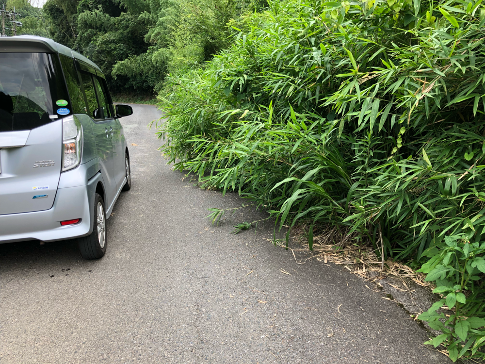 君迫町から田代地区へ行こうとしたら、市道に竹やササがせり出して、通行に障害になりそうです。市に除去するよう連絡しました。
